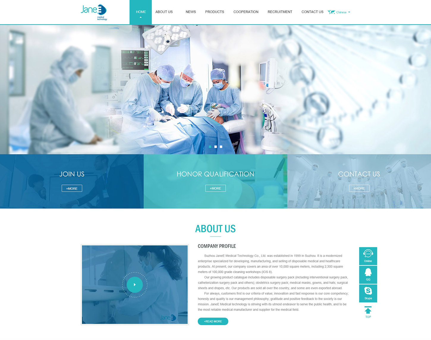 苏州健宇医疗用品有限公司成立于1999年,是一家专业致力于开发、生产、销售一次性使用医疗卫生用品的现代化企业。目前公司占地面积10,000多平方米,拥有十万级净化车间2300多平方米。