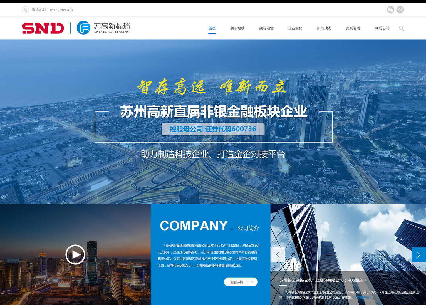 苏州高新福瑞融资租赁有限公司设立于2015年1月28日,注册资本3亿元人民币,是经江苏省商务厅、苏州新区国资委批准设立的中外合资融资租赁公司。公司由苏州新区高新技术产业股份有限公司(上海证券交易所上市,证券代码600736)、苏州高新创业投资集团有限公司、东京盛世利株式会社(东京证券交易所上市,证券代码 8439)、福田金属箔粉工业株式会社等四家有实力的公司共同出资设立,股权占比分别为55%、20%、20%和5%。公司注册地址为苏州市高新区狮山路35号1幢2500室。