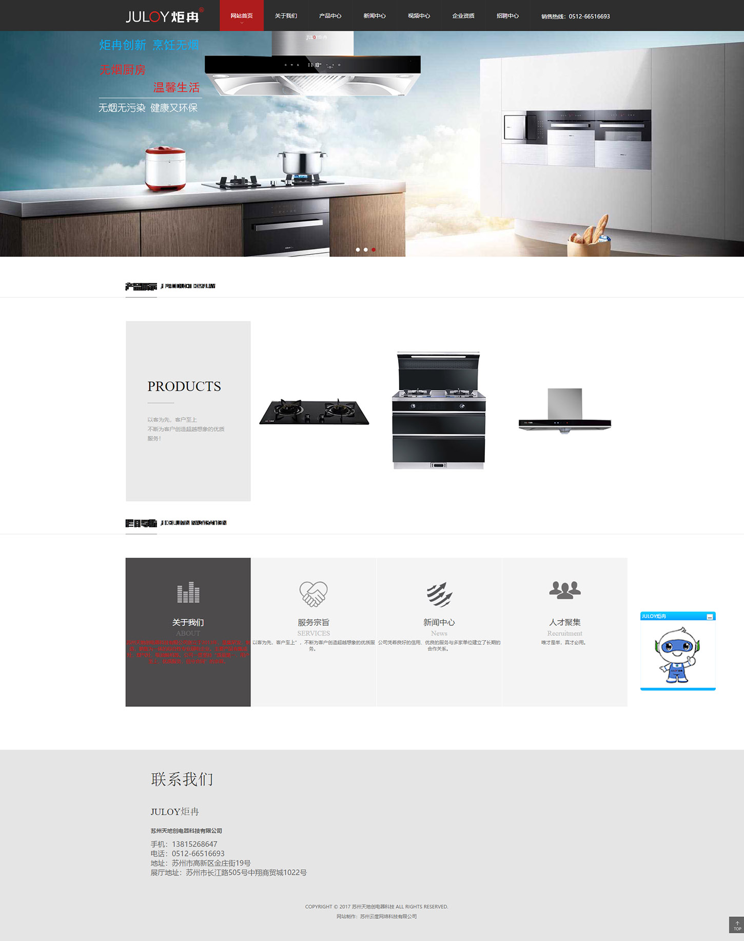 苏州天地创电器科技有限公司创立于2013年,是集研发,制造,销售为一体的综合性专业厨电企业。主要产品有集成灶,煤气灶,吸油烟机等。公司一贯坚持“质量第一,用户至上,优质服务,信守合同”的宗旨。